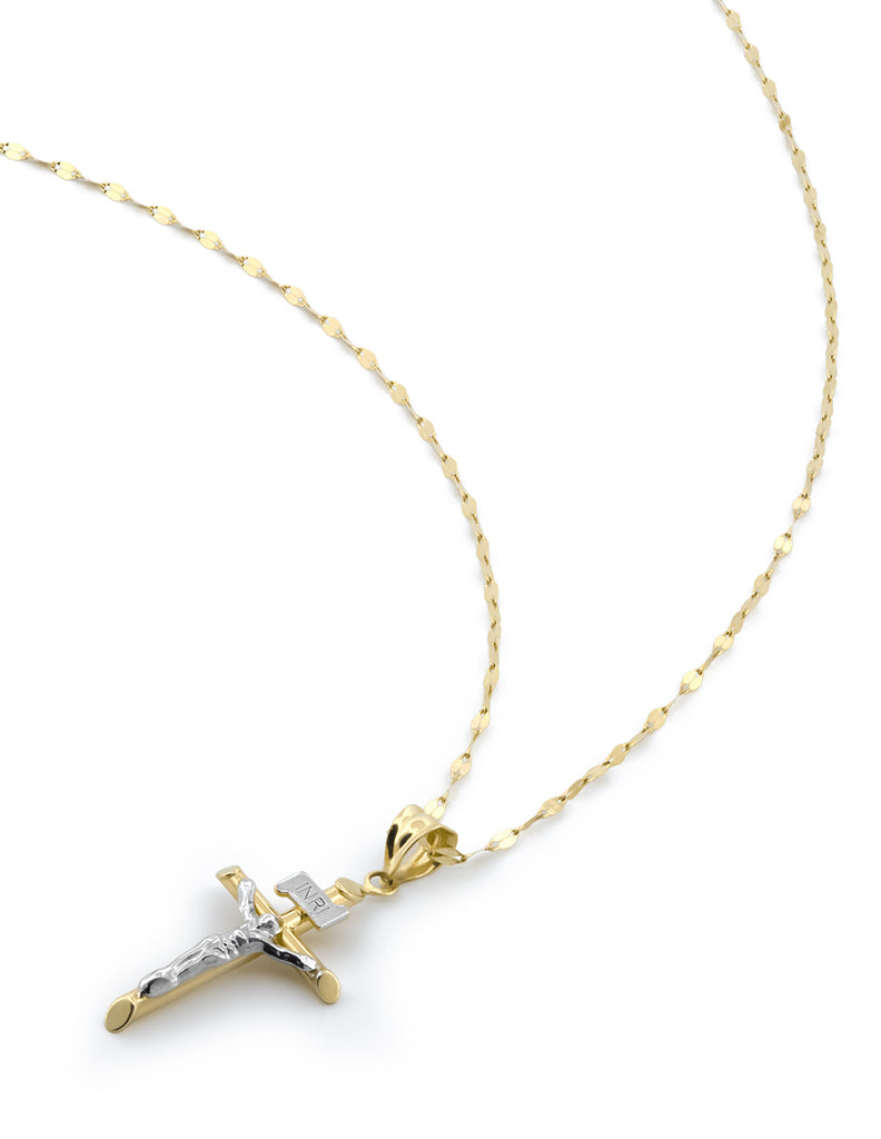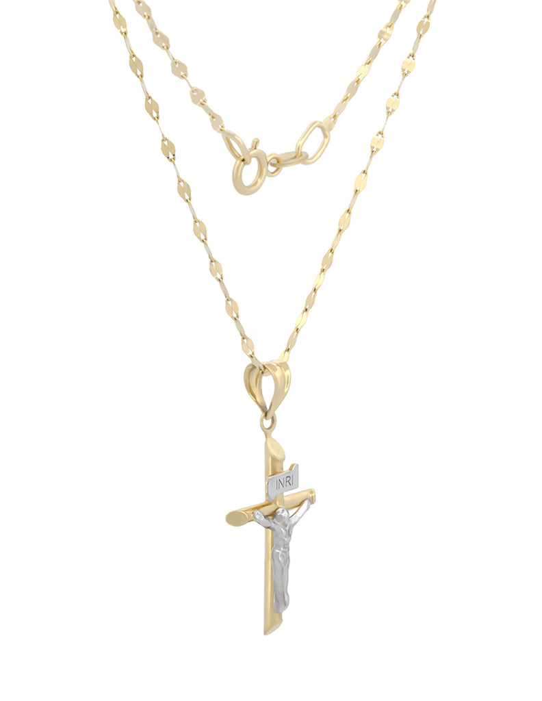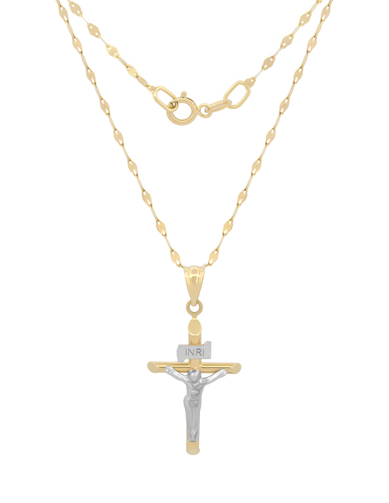 CADENA DIJE CRISTO EN ORO SÓLIDO DE 14KMedida Cadena Grano de Café: 45cm Medida Dije Cristo: 2.1 * 1.5 cm Peso Cadena: 0.8 grPeso Dije: 0.7 grIdeal para Bautizo y Primera Comunión